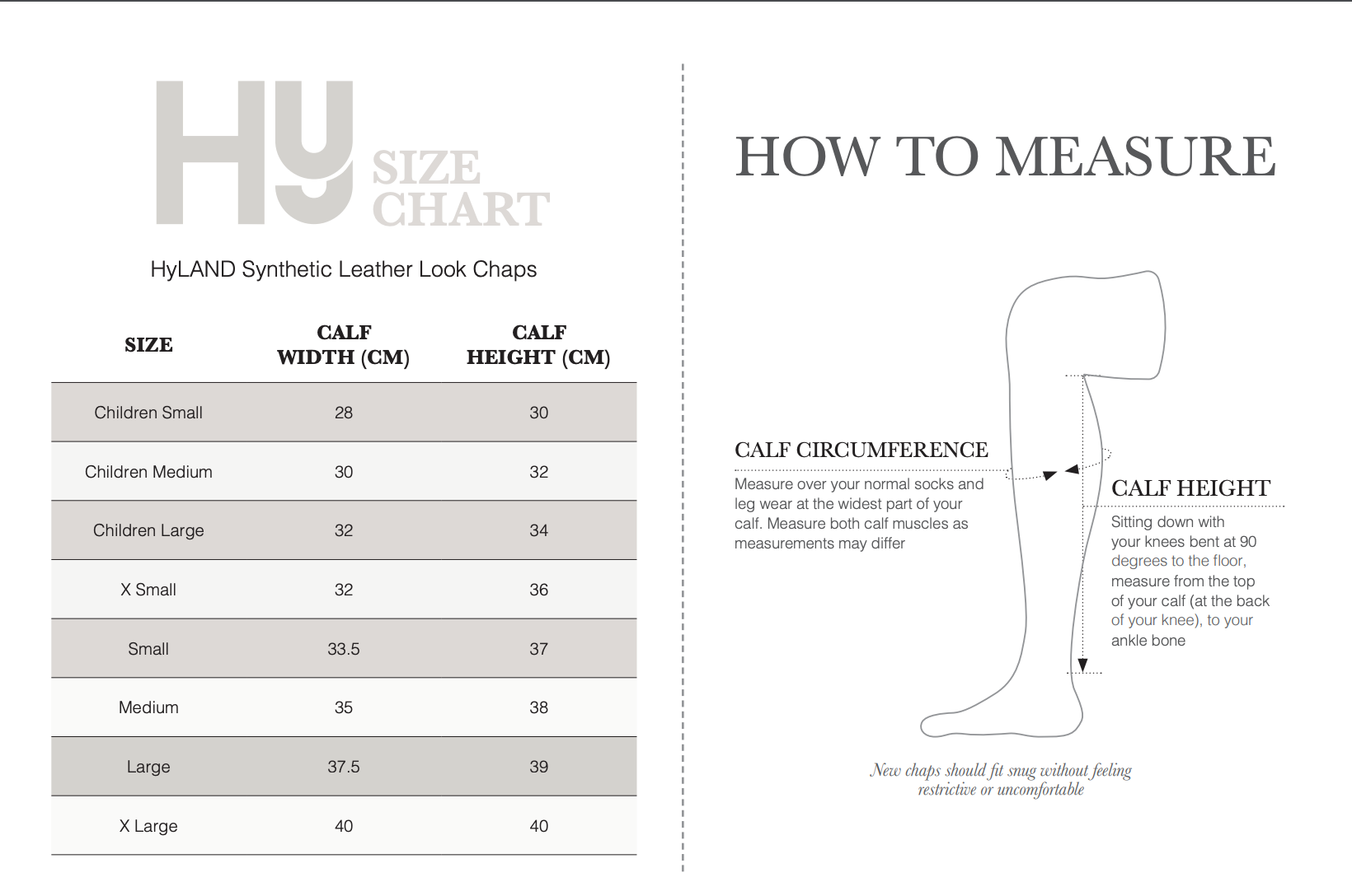 Durable, great every day protection for your legs with these synthetic, leather effect chaps. With an elasticated panel for a snug fit and an additional panel at the front to easily slide over your jodhpur boots. Designed with a soft, fleece style lining for extra protection and a strong elasticated press stud fastening around the ankle. These are extremely comfortable to ride in – you will almost forget you are wearing them!