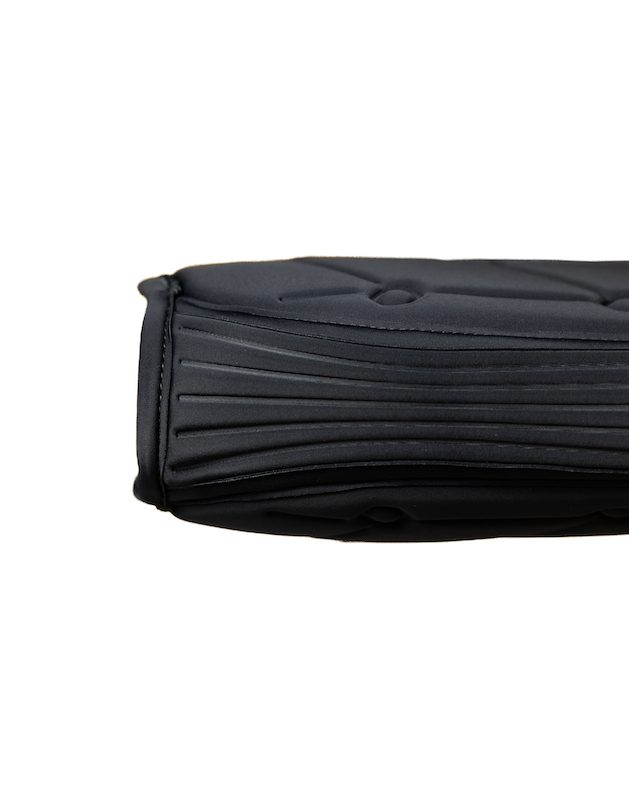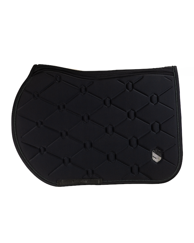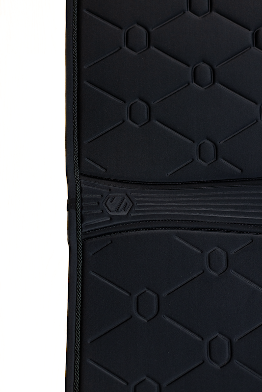 Designed to optimise the horse's performance and well-being, the Samshield Saddle Pad fits perfectly to the back thanks to its anatomical shape. Its seamless sensitive areas and stretch materials ensure maximum comfort, while the high-density foam absorbs shocks and the breathable micromesh provides constant ventilation. Durable and refined, with a lint-free fabric and an indelible embossed crest, it combines functionality and aesthetics to enhance every session, from show jumping to eventing.