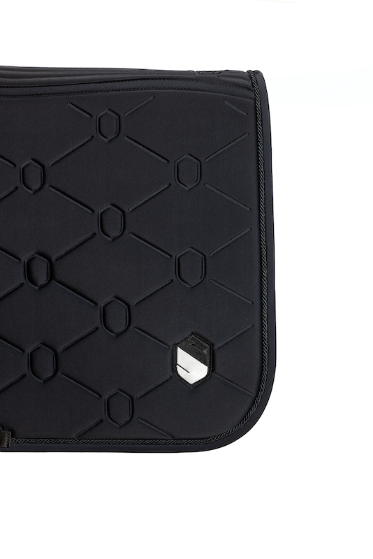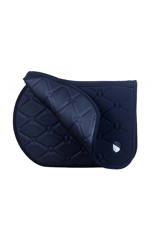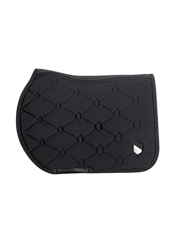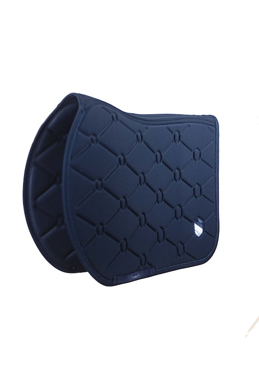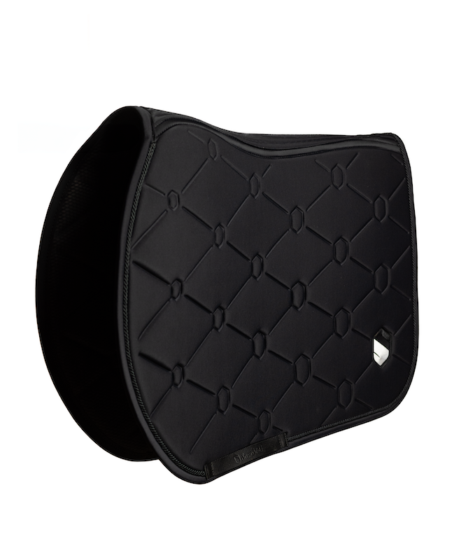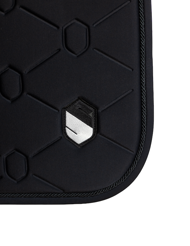 Designed to optimise the horse's performance and well-being, the Samshield Saddle Pad fits perfectly to the back thanks to its anatomical shape. Its seamless sensitive areas and stretch materials ensure maximum comfort, while the high-density foam absorbs shocks and the breathable micro mesh provides constant ventilation. Durable and refined, with a lint-free fabric and an indelible embossed crest, it combines functionality and aesthetics to enhance every session, from show jumping to eventing.