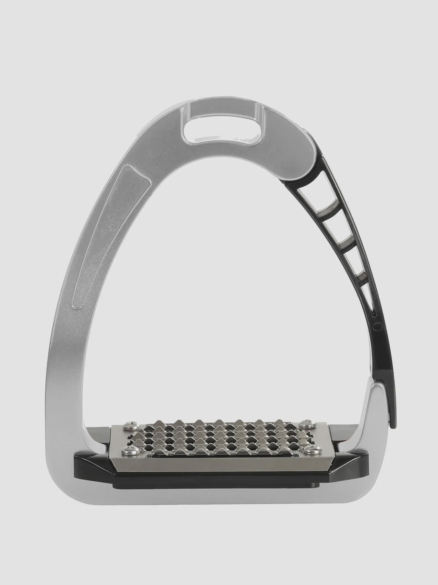 The stirrup bow is made of aluminium, while the opening arm is made of a special polyamide material. The stirrup pad is made of polyamide, too, and the tread is fabricated from stainless steel. The "AluPro" model, in principle, provides the same function as the Arena "HiFlex", but it is based on different materials.